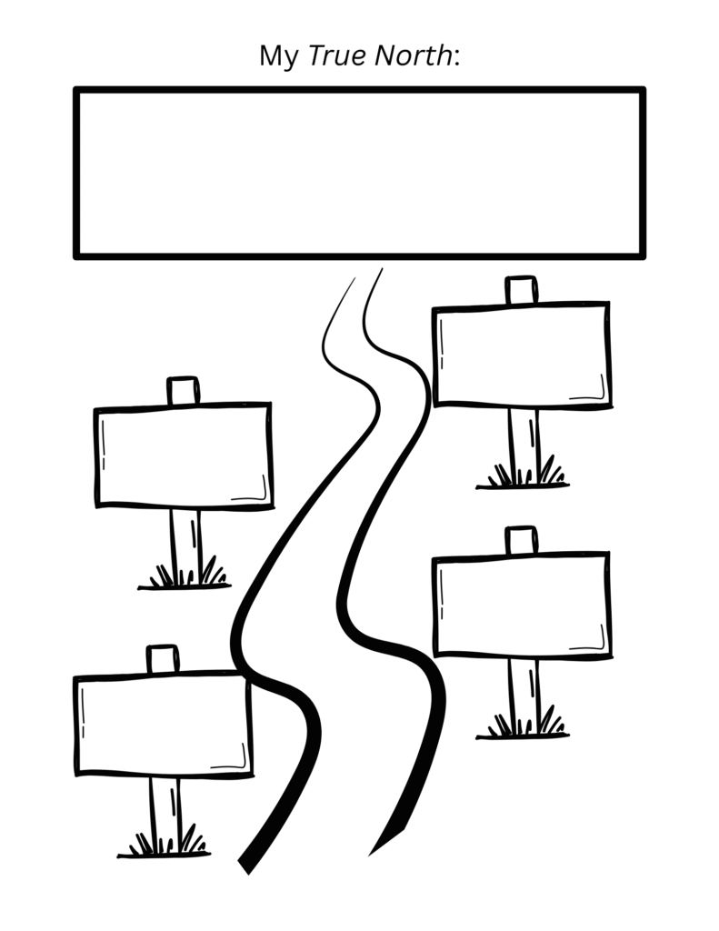 Knowing your True North and what keeps you grounded along the way is a powerful first step toward a more meaningful path. Below, you’ll find a printable worksheet to help you map it all out. Keep it somewhere visible—it might feel cheesy, but a visual reminder of what matters most can go a long way.